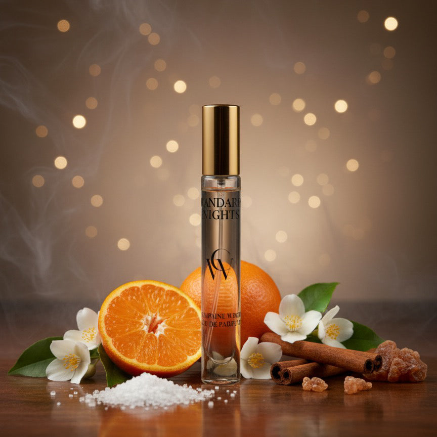 Experience the mysterious allure of the Mandarin Nights Fragrance! Feel the warmth of mandarin and sea salt, complemented by the exotic, mysterious scents of jasmine, vetiver, and labdanum. Light up your nights with its sensual contradictions!
